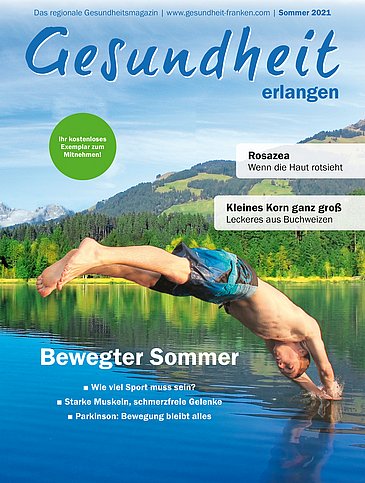 Seit Anfang Juni 2021 wird die Sommerausgabe von „Gesundheit erlangen“ u. a. am Universitätsklinikum Erlangen, in Apotheken und direkt an viele Haushalte in Erlangen verteilt. Um die Qualität des Gesundheitsmagazins weiter zu verbessern, hat die Redaktion eine Leserumfrage gestartet, die noch bis Freitag, 13. August 2021, direkt im Heft oder online unter www.gesundheit-franken.com/leserumfrage ausgefüllt werden kann. Unter den Teilnehmenden werden attraktive Preise verlost.