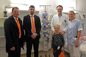 René Ott, Direktor Franken der Sixt GmbH & Co. Autovermietung KG, und sein Kollege Emre Dinc haben den Patientinnen und Patienten der Kinder- und Jugendklinik (Direktor: Prof. Dr. Joachim Wölfle) des Uniklinikums Erlangen eine Woche vor Weihnachten eine besondere Freude bereitet: Sie kamen mit einer Wagenladung voller Geschenke und überreichten sie im Beisein von Prof. Dr. Markus Metzler, Leiter der Kinderonkologie, und Stationsleitung Maresa Siebert persönlich an die Kinder. Die Beschenkten freuten sich über die Spielzeuge, die willkommene Abwechslung vom Klinikalltag und über die Anteilnahme, die René Ott und Emre Dinc ihnen entgegenbrachten.