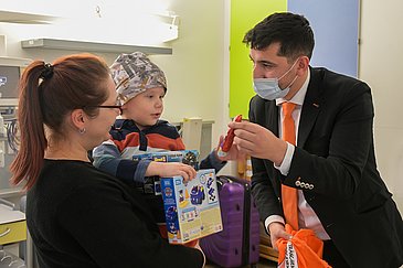 Die Geschenke des Autovermieters überbrachten René Ott und Emre Dinc im Auftrag der Regine Sixt Kinderhilfe Stiftung „Tränchen trocknen“. Sie setzt sich deutschland- und weltweit in den Bereichen Gesundheit, Bildung, Fürsorge und Nothilfe dafür ein, die Lebensumstände von Kindern zu verbessern.