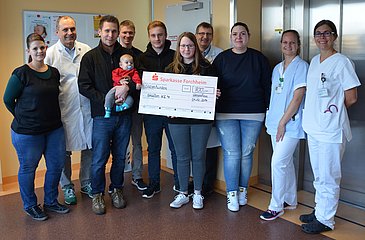 Die Jugendfeuerwehr sammelt jedes Jahr nach Weihnachten die Christbäume im Ort ein und erhält von den Anwohnern dafür großzügige Spenden, die jedes Jahr für einen guten Zweck verwendet werden. Dieses Mal haben die Mitglieder der Jugendfeuerwehr Wiesenthau entschieden, dass das Geld an die Station KE4 der Kinderkardiologischen Abteilung der Uniklinik Erlangen gehen soll. Der Betreuer der Jugendfeuerwehr, Herr Uttenreuther, hat selbst einen Sohn mit angeborenem Herzfehler und kennt somit die Kinderkardiologie aus eigener Erfahrung.
