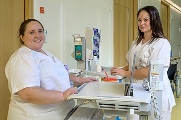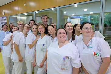 Leonie war nun drei Wochen auf der allgemeinchirurgischen Station B3-1 des Chirurgischen Zentrums. Nach einem Einführungstag wurden die Auszubildenden zwei Wochen lang zunächst eingearbeitet. In der letzten Projektwoche betreuten sie die Patientinnen und Patienten selbstständig. „Dabei wurden sie natürlich stets von examinierten Pflegefachpersonen begleitet, die den Azubis bei Fragen oder Unsicherheiten mit Rat und Tat zur Seite standen. Zusätzlich wurden sie in der Dienst-Überlappungszeit noch durch die Lehrkräfte aus dem Staatlichen Beruflichen Schulzentrum für Gesundheitsberufe am Universitätsklinikum Erlangen pädagogisch beraten“, so Reiner Schrüfer. Die Auszubildenden planten, organisierten und realisierten selbstständig den Stationsbetrieb, übernahmen oder delegierten sämtliche Vorbehaltstätigkeiten und evaluierten das Pflegeergebnis im Team. Das Resümee des Pflegedirektors: „In den täglichen Reflexionsrunden zogen die zukünftigen Pflegefachkräfte bereits jetzt ein positives Fazit. Sie konnten tolle Erfahrungen schildern und sehen ihre Stärken und Schwächen bezüglich ihres Wissens und ihrer Fähigkeiten.“