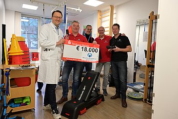 Das Sportangebot der Erlanger Kinderonkologie ist weitgehend spendenfinanziert, da die meisten Krankenkassen die Kosten nicht übernehmen. Dabei wirken sich Bewegung und Sport positiv auf den Gesundheitszustand der jungen Patientinnen und Patienten aus: So kann ihnen beispielsweise mehr Muskelmasse helfen, die medikamentöse Behandlung besser zu vertragen – und auch die Stimmung profitiert. „Ich erinnere mich an einen Patienten, der in der Sporttherapie zum ersten Mal seit fast zwei Wochen wieder ein Lachen im Gesicht hatte“, berichtete Sporttherapeut Nils Holle. Mit der finanziellen Unterstützung können nun weitere Geräte für den Sportraum angeschafft werden.