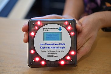 Einen Arzttermin wahrzunehmen und dabei im Wartezimmer zu anderen Patienten ausreichend Abstand zu halten, ist zu Coronazeiten gar nicht so einfach. Ein neu eingeführtes Rufsystem ermöglicht Wartenden in der Hals-Nasen-Ohren-Klinik – Kopf- und Halschirurgie (Direktor: Prof. Dr. Dr. h. c. Heinrich Iro) nun genau das: Dank vibrierenden Pagergeräten können Patienten ihre Wartezeit auch außerhalb des Klinikgebäudes verbringen. Somit lässt nicht nur der Mindestabstand von eineinhalb Metern leichter einhalten, sondern die Patienten können ihre Zeit auch flexibler gestalten. Insgesamt 90 Pager stehen Patienten nun bei der ambulanten Anmeldung, der Hochschulambulanz, der Privatambulanz, der Ultraschallabteilung, der Audiologie sowie der Phoniatrie und Pädaudiologie zur Verfügung.