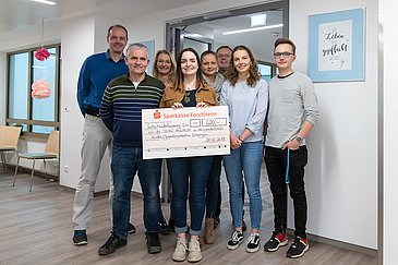 Die Teilnehmer der Song-Andacht in der Kirche St. Heinrich in Kleinsendelbach hatten sich mit Liedern, Gedichten und in der Stille auf die Suche nach dem Sinn gemacht. Das Motto ihres modernen Jugendgottesdienstes im November 2018: "Irgendwas, das bleibt". Jetzt wollten die Jugendlichen und jungen Erwachsenen den Patienten der Kinder- und Jugendabteilung für Psychische Gesundheit (Leiter: Prof. Dr. Gunther Moll) des Universitätsklinikums Erlangen etwas schenken, das bleibt - und Sinn stiftet: Drei junge Song-Andacht-Mitstreiter übergaben deshalb gemeinsam mit Gemeindereferent Horst Schmid 620 Euro, die im Rahmen des Gottesdienstes gesammelt wurden.