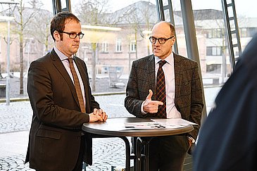 Beim Pressegespräch in den Hörsälen Medizin informierten Oberbürgermeister und Ärztlicher Direktor heute über die Bauplanung auf dem Nordgelände