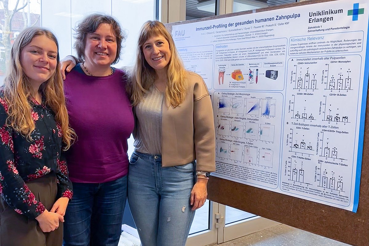 Auf der 57. Jahrestagung der Arbeitsgemeinschaft für Grundlagenforschung präsentierten Wissenschaftlerinnen des biologischen Labors der Zahnklinik 1 ihre neuesten Ergebnisse zum Thema „Immunzell-Profiling der gesunden Zahnpulpa“. Die Studien liefern wertvolle Einblicke in die Zusammensetzung der Immunzellen in der Zahnpulpa.