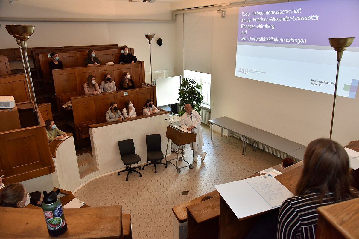 Mit ihrem dualen Studiengangkonzept im Fach Hebammenwissenschaft bietet die FAU in enger Kooperation mit dem Uniklinikum Erlangen einen primärqualifizierenden Doppelabschluss (Bachelor of Science und Berufszulassung zur Hebamme), der das gesamte Spektrum der originären Hebammentätigkeit umfasst. So werden die Studierenden zu anwendungsbezogenen Fachexpertinnen bzw. -experten und Führungspersonen ausgebildet, die über wissenschaftliche Kompetenzen verfügen und gleichermaßen sämtliche Herausforderungen der Versorgungpraxis zu bewältigen wissen.