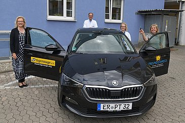 Das Kinderpalliativteam der Kinder- und Jugendklinik (Direktor: Prof. Dr. Joachim Wölfle) des Universitätsklinikums Erlangen hat das fünfte „Einsatzfahrzeug“ für seine Hausbesuche bei Patienten erhalten. Die Anschubfinanzierung dazu hatte Markus Kugler, Geschäftsführer der Feser, Graf & Co. Automobil Holding GmbH, im Mai 2020 im Namen der Uwe-Feser-Kinderstiftung geleistet. Dank dieser Förderung konnte der Verein „Tigerauge: Initiative Kinderhospiz Nordbayern e. V.“ das neue Auto jetzt dem Kinderpalliativteam übergeben. Tigerauge-Vorsitzende Dr. Dorothea Hobeck überreichte den Schlüssel an Gerswid Herrmann, Erste Vorsitzende des Freundeskreises der Kinderklinik, Dr. Chara Gravou-Apostolatou, Leiterin des Kinderpalliativteams, und Klinikdirektor Prof. Wölfle.