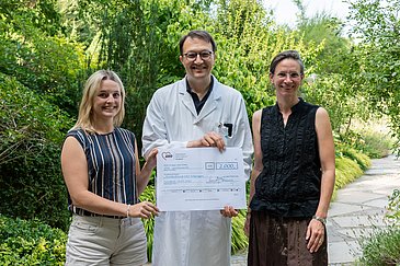 Viele kleine und große Hände packten mit an – viele kleine und große Füße machten Strecke: So sammelten vom Kleinkind bis zum Senior rund 75 Beteiligte beim Spendenlauf des AWO Kreisverbands Fürth-Land im Juni in Zirndorf insgesamt 4.000 Euro. Das Geld kam durch die gemeinsam zurückgelegten 172 Kilometer sowie durch den Verkauf von Kuchen, Buttons etc. zusammen. 2.000 Euro davon gehen nun an die Kinder- und Jugendklinik (Direktor: Prof. Dr. Joachim Wölfle) des Universitätsklinikums Erlangen: Mit der stolzen Summe wird das Projekt „young AMBORA“ unterstützt. In enger Zusammenarbeit mit der Apotheke des Uni-Klinikums Erlangen wird dabei die Arzneimitteltherapiesicherheit bei oraler Tumortherapie untersucht, um u. a. Neben- und Wechselwirkungen bei krebskranken Kindern und Jugendlichen zu vermeiden sowie Wirksamkeit und Verträglichkeit zu verbessern. Ein Herzensprojekt von Prof. Dr. Markus Metzler, Leiter der Kinderonkologie: „Ich hoffe sehr, dass wir die umfassende Beratung und Begleitung betroffener Familien bald fest bei uns etablieren können. Wir sind von Herzen dankbar für die Spende der AWO Fürth-Land, die uns die Durchführung von young AMBORA ermöglicht.“
