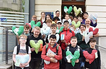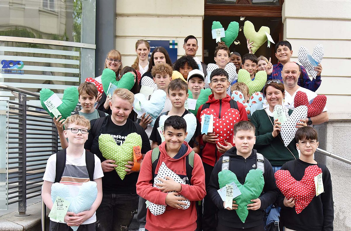 Nürnberger Mittelschule spendet 90 Herzkissen für Brustkrebspatientinnen der Frauenklinik