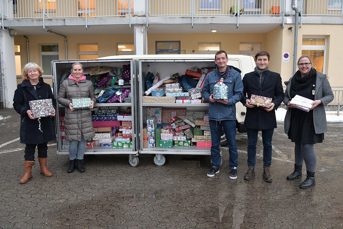 Siemensmitarbeitende in Erlangen konnten sich den digitalen Wunschzettel dann in einer internen App ansehen, sich ein Geschenk aussuchen, es besorgen, verpacken und abgeben oder es per Post einschicken. Philipp Klopsch und Andreas Wiemann vom Nachwuchskreis der Siemens AG betreuten die Aktion in diesem Jahr und fuhren jetzt die 200 bunt verpackten Päckchen mit einem Transporter zur Kinderklinik.