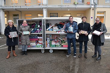 Auf dem Wunschzettel der Kinderklinik standen diesmal u. a. Bastelsets, Technik- und Konstruktionsspielzeug, Puzzles, Rucksäcke, T-Shirts und Musikspielzeug. „Wir sind sehr dankbar, dass ihr an die Kinder, aber eben auch an die vielen Jugendlichen denkt, die unsere Patientinnen und Patienten sind und die teilweise andere Bedürfnisse haben und sich andere Dinge zu Weihnachten wünschen“, sagte Marion Müller und überreichte den beiden Geschenkeüberbringern als Dankeschön kleine Basteleien aus der Kinderklinik.