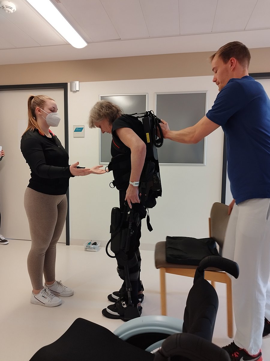 Die gesamte Bandbreite von Patienteneinzelbehandlung im Therapeutischen Team, über Rollstuhltraining, bis zur Trainingstherapie und dem Exoskelett als Patientendemo und als Eigenerfahrung hat den Tag für uns unvergesslich werden lassen.