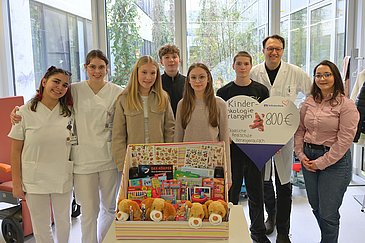 Prof. Metzler freute sich sehr über erneute Unterstützung aus der Herzogenauracher Realschule: „Soziales Engagement wird an Eurer Schule wirklich großgeschrieben, das ist bemerkenswert“, sagte er zu den Schülerinnen und Schülern. „Ich finde es toll, dass Ihr so tatkräftig ein eigenes Projekt umgesetzt und dabei auch noch an andere gedacht habt.“ Bei der Übergabe suchte sich der fünfjährige Patient Matteo gemeinsam mit den Jugendlichen direkt eines der gerade gespendeten Kuscheltiere aus. Später beantwortete Prof. Metzler den Schülerinnen und Schülern außerdem noch Fragen zu verschiedenen onkologischen Erkrankungen und zu den vielfältigen Berufen im Krankenhaus.