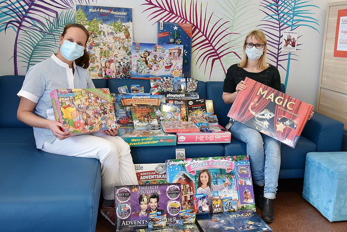 Von bunten Bausteinen bis zu den Ehrlich Brothers, von kleinen Spielzeugfiguren bis hin zu Bilderbüchlein – die hochwertigen Adventskalender enthalten beliebte und originelle Spielzeugüberraschungen für jedes Alter. „Für die schwer kranken Kinder bedeutet das Öffnen der Türchen an jedem Tag eine große Freude“, bedankt sich Tanja Burkhardt, Psychologin in der Kinderkardiologie des Uni-Klinikums Erlangen. „Gerade jetzt ist das eine schöne Abwechslung für die stationär behandelten Kinder und Jugendlichen, weil die Besuche ja leider aufgrund von Corona eingeschränkt sind“, ergänzt Tina Scherzer, stellvertretende Stationsleitung der Kinderherzchirurgie. Der Förderverein Herzpflaster unterstützt durch regelmäßige Spenden, Spielzeug und Annehmlichkeiten, die nicht vom Klinikbudget finanziert werden können, verlässlich die Arbeit der Kinderkardiologie und der Kinderherzchirurgie des Uni-Klinikums Erlangen. „Die Zusammenarbeit ist wunderbar unkompliziert“, freut sich Tina Scherzer. „Wenn wir etwas dringend benötigen, genügt oft ein einziger Anruf.“