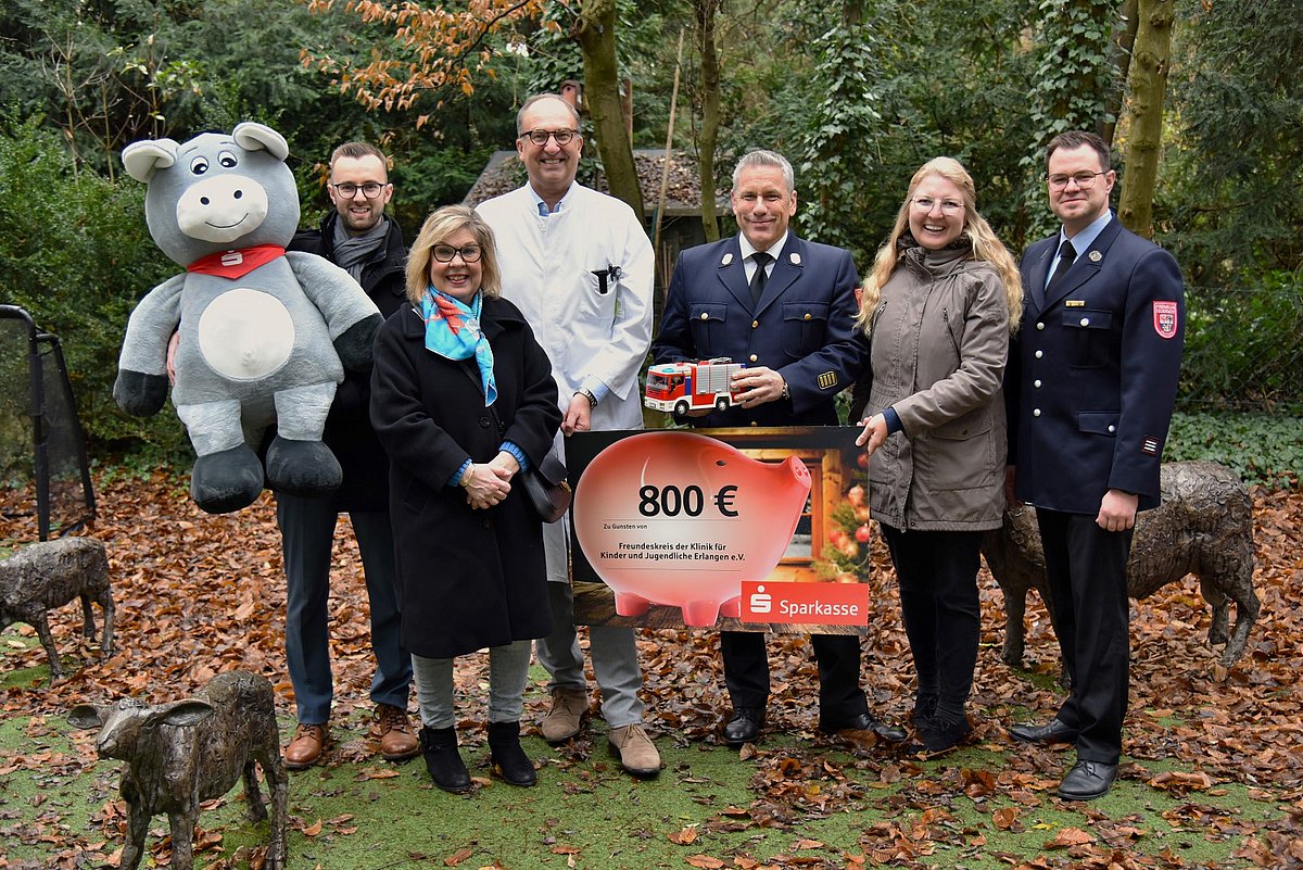 Gemeinsame Aktion der Stadt- und Kreissparkasse Erlangen und der Erlanger Feuerwehr bringt 800 Euro für die Kinderklinik ein