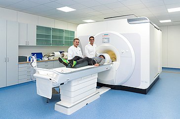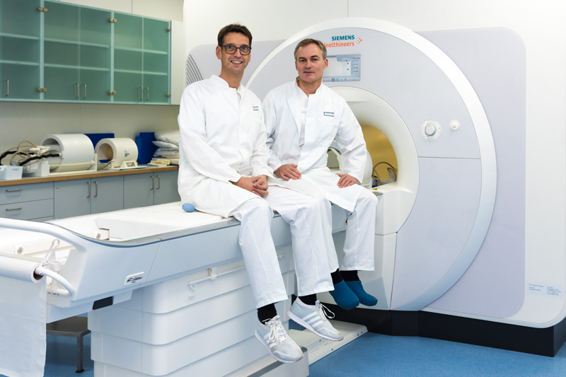 "Der neue MRT ermöglicht dank der sehr hohen Auflösung detaillierte Einblicke in den menschlichen Bewegungsapparat, zeigt präzise die Stoffwechselprozesse im Gehirn und hilft außerdem bei der Darstellung neurologischer Krankheiten", sagt Prof. Dr. Michael Uder, Direktor des Radiologischen Instituts des Universitätsklinikums Erlangen. Für seinen Kollegen, Prof. Dr. Arnd Dörfler, Leiter der Neuroradiologischen Abteilung des Universitätsklinikums Erlangen, zeigt der neue MR-Scanner besonders bei Gehirnuntersuchungen seine Vorteile: "Bei 7-Tesla sind Gehirnschädigungen dank der besseren Auflösung und des deutlich stärkeren Bildkontrasts viel klarer zu erkennen." Anwendungsbeispiele hierfür seien Multiple Sklerose, Hirntumoren oder Metastasen, Epilepsie und Demenz, bei denen die höhere Detailauflösung neue diagnostische Möglichkeiten bietet, die bei niedrigeren Feldstärken so nicht möglich wären. "Viele Erkrankungen können so wahrscheinlich besser und schneller erkannt und damit effektiver behandelt werden", so Prof. Dörfler.