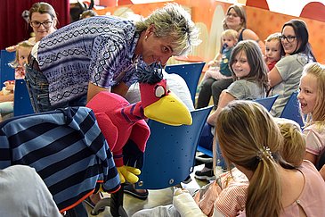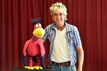 Sprachloses Staunen und herzhaftes Lachen: Heute (09.08.2017) Nachmittag war von allem etwas dabei! Zu Beginn entführte Zauberkünstler Peter Marsch die Patienten der Kinder- und Jugendklinik (Direktor: Prof. Dr. Dr. h. c. Wolfgang Rascher) des Universitätsklinikums Erlangen in die Welt der Magie. Einige der kleinen Zuschauer durften sogar selbst zum Zauberstab greifen und Zaubersprüche murmeln. Und es ging ganz verhext weiter: Da flog doch tatsächlich ein sprechender Vogel auf die Bühne! Der freche Joschi unterhielt Groß und Klein mit witzigen Sprüchen, demonstrierte lautstark seine Sangeskünste und lenkte die Kinder mit seinem lustigen Treiben vom Krankenhausalltag ab.