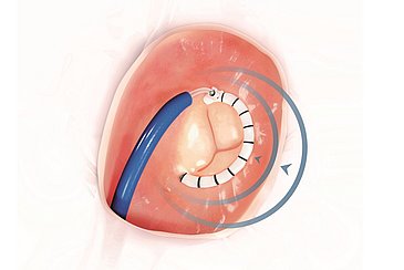Um auch die empfindliche Trikuspidalklappe mit einer interventionellen Therapie behandeln zu können, verwendet der Kardiologe eine neu entwickelte Kathetermethode: „Bei dieser wird ein Band implantiert, mit dessen Hilfe der Ring der Klappe verkleinert wird, so dass sich die Klappenflügel wieder dicht schließen können. Ein neues Verfahren, das wir bereits mehrfach erfolgreich angewendet haben“, berichtet der Kardiologe, der am Uni-Klinikum Erlangen im modernsten Herzkatheterlabor Europas arbeitet. Minimalinvasive Kathetereingriffe ersparen Patienten die chirurgische Öffnung des Brustkorbs und das Anschließen an eine Herz-Lungen-Maschine.