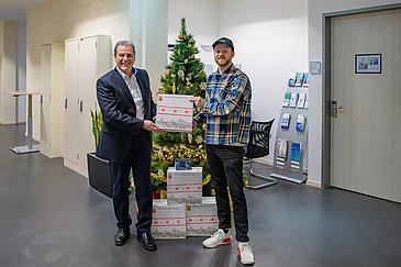 Sie engagieren sich selbst in Berufen und Ehrenämtern, in denen es keine Feiertage gibt und teilen sogar noch ihre Spenden: Der Organisator der diesjährigen Blaulichtaktion, Simeon Ulm von der Bergwacht Erlangen, überreichte 500 Lebkuchen für den Pflegedienst des Uniklinikums Erlangen. „Ihre Arbeit, Ihr Engagement und Ihre Hingabe bedeuten so viel – nicht nur für Ihre Patientinnen und Patienten, sondern für uns alle. Sie sind ein unverzichtbarer Teil unserer Gemeinschaft, und wir möchten Ihnen auf diesem Weg danken, dass Sie jeden Tag mit Leidenschaft und Herz für andere da sind“, stand in den beiliegenden Karten, die zusammen mit den Lebkuchen an die Pflege-Teams auf den Stationen des Uniklinikums Erlangen verteilt wurden.