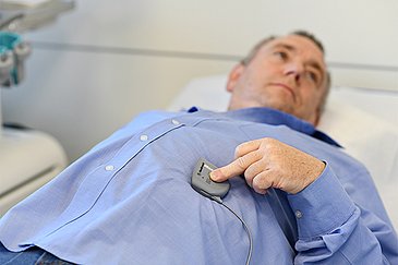 Ärztinnen und Ärzte implantieren das fünf mal sechs Zentimeter kleine Gerät meist im Unterbauch unter die Haut und verbinden seine zwei Elektroden mit den Muskeln der Magenwand. Leichte elektrische Impulse – ausgehend vom Neurostimulator im Unterbauch – regen dann den Magen wieder zur Bewegung an. „Über ein Programmiergerät außerhalb des Körpers passen wir die Intensität der elektrischen Impulse für jede Patientin und jeden Patienten genau an“, sagt Christian Krautz. „Die Therapie ist reversibel – das heißt: Wir können die Impulse reduzieren, den Schrittmacher bei Nebenwirkungen abschalten oder sogar wieder entfernen.“