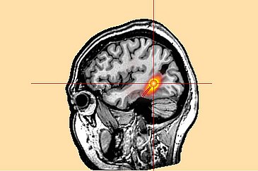 Um das gefundene Epilepsieareal in einem 3-D-Bild des Gehirns zu verorten, kombinieren die Ärzte des Erlanger Epilepsiezentrums die MEG mit den Schichtbildern der Magnetresonanztomografie (MRT). So erhalten sie eine dreidimensionale „Landkarte“ des Gehirns mit genau markierter Epilepsieregion.
