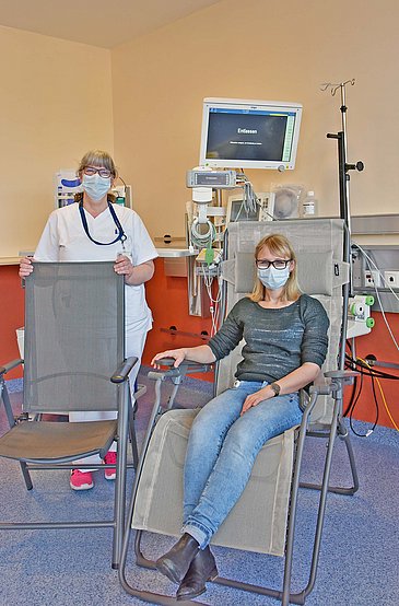 „Diese bequemen Stühle bieten Eltern während der Zeit auf der Intensivstation die Möglichkeit, sich auszuruhen, ihren Säugling im Liegen auf der eigenen Brust zu mobilisieren oder im Ausnahmefall auch einmal auf einem solchen Stuhl zu nächtigen, da die Intensivstation keine Betten für Begleitpersonen vorhält“, erklärt Lennart Heinzel, Psychologe in der Kinderkardiologischen Abteilung (Leiter: Prof. Dr. Sven Dittrich) des Uni-Klinikums Erlangen. Seine Kollegin Tanja Burkhardt, Psychologin in der Kinderkardiologie des Uni-Klinikums Erlangen, ergänzt: „Außerdem finden Mütter auf den bequemen Stühlen leichter eine gute Position zum Stillen.“