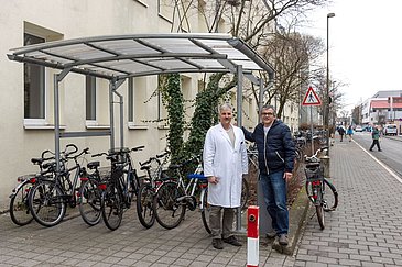 Als nächstes Projekt sollen neue Fahrradstellplätze im Innenhof der Zahn-Mund-Kieferklinik in der Glückstraße entstehen, sobald die Fassade des Hörsaals erneuert worden ist. "Auch hier wollen wir wie bei der Magistrale am Internistischen Zentrum durch ein vorgezogenes Dach überdachte Fahrradständer installieren", erläutert Reinhold Stubrach, Technischer Betriebsleiter Stammgelände. "Beim Schaffen von Fahrradstellplätzen gehen wir immer kreativ vor und versuchen, die vorhandenen Ressourcen optimal zu nutzen und mögliche Synergieeffekte kostenneutral zu realisieren." Sofern Wege zu neuen Fahrradständern beleuchtet werden sollen, werden Manfred Kugler und Reinhold Stubrach von Otto Mitterer beraten, der als Leiter der Fachabteilung Energiemanagement am Uni-Klinikum Erlangen stets nach möglichst umweltfreundlichen Lösungen sucht.