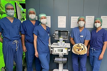 Etwa 40 Prozent der Frauen im gebärfähigen Alter sind einmal im Leben betroffen – von einem Myom in der Gebärmutter, der häufigsten gutartigen Tumorart bei Frauen. Nicht immer bedarf es einer Behandlung, da Betroffene nicht selten symptomfrei bleiben und Myome sich selbst zurückbilden können. Hat eine Patientin jedoch Beschwerden – zum Beispiel Blutungsstörungen oder chronische Unterbauchschmerzen –, wird ein entsprechender Eingriff notwendig. In der Frauenklinik (Direktor: Prof. Dr. Matthias W. Beckmann) des Uniklinikums Erlangen wird dafür seit 2016 das von einer amerikanischen Firma entwickelte, minimalinvasive Radiofrequenzablationsverfahren „Sonata“ eingesetzt. Die Spezialistinnen und Spezialisten der Erlanger Frauenklinik konnten nun einen Meilenstein feiern: Bereits die 100. Patientin wurde mit „Sonata“ behandelt.