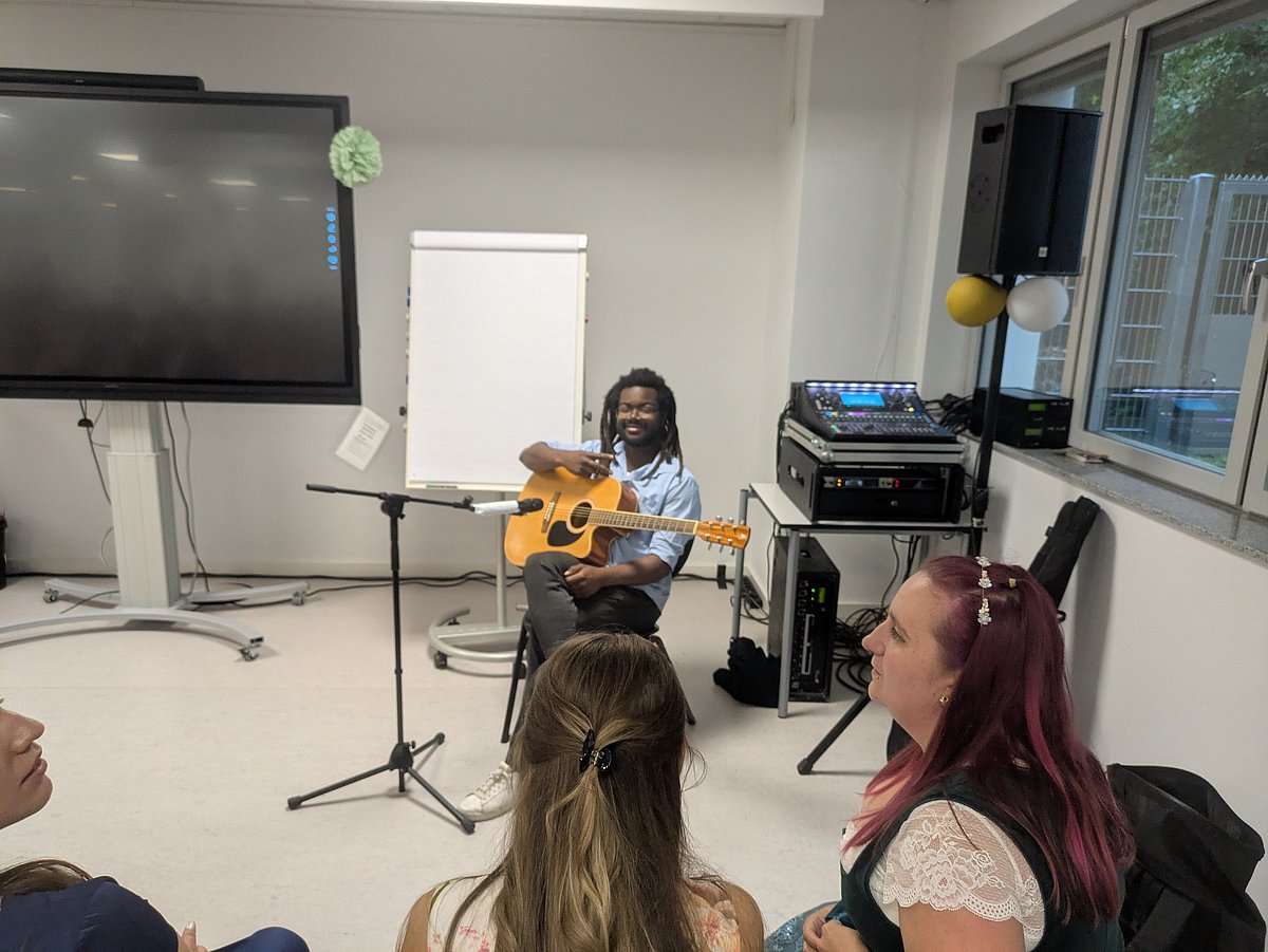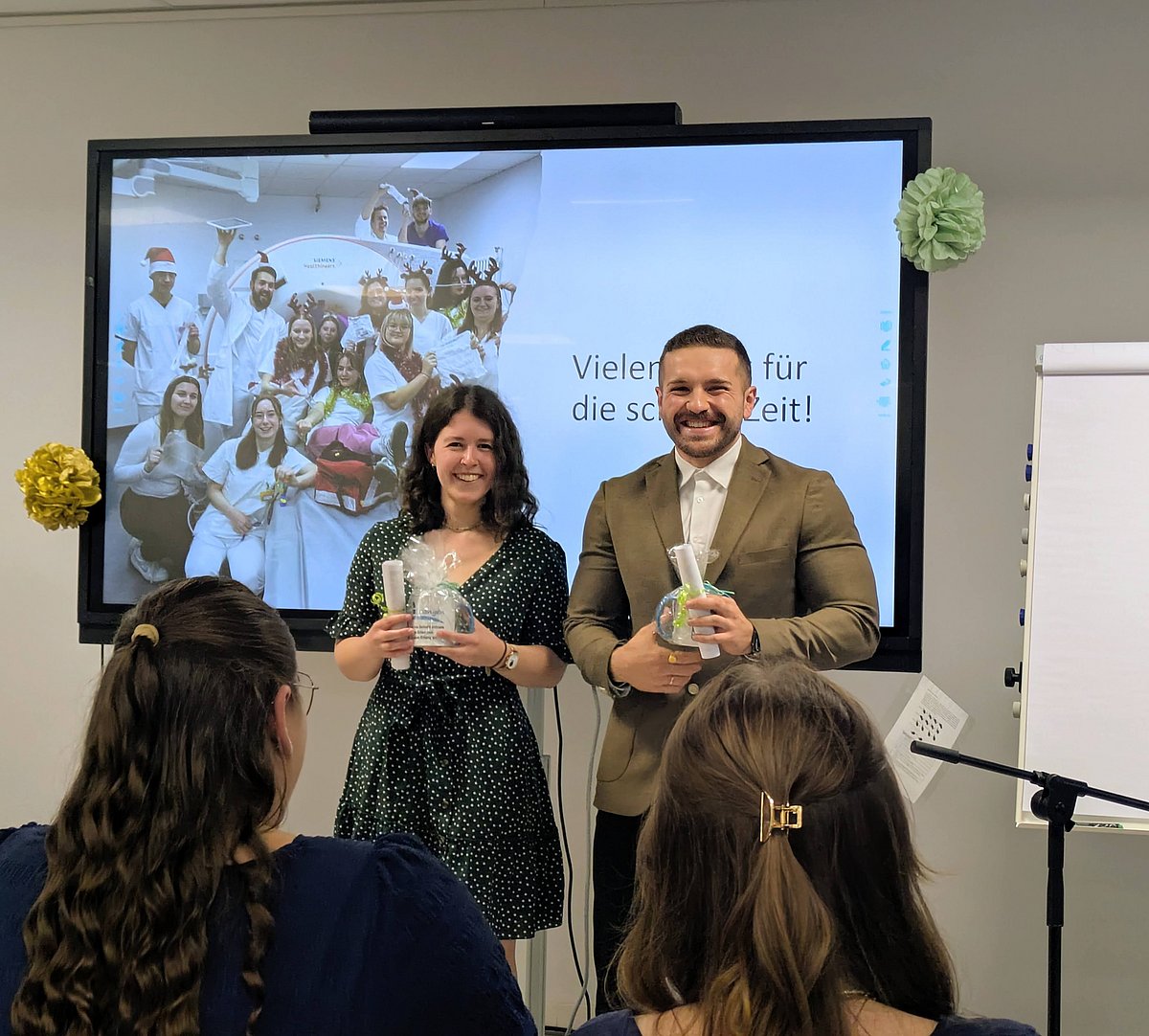 Im weiteren Verlauf ehrten die Klassenleitungen die Klassenbesten und Prüfungsbesten – ein besonderer Moment für alle, die mit herausragenden Leistungen glänzen konnten. Die festliche Zeugnisübergabe bildete einen emotionalen Höhepunkt des Tages. Musikalisch begleitet wurde die Feier stimmungsvoll von Fadel (Mittelkurs, Radiologie).