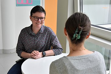 Die zunächst ehrenamtliche Arbeit mit krebskranken Kindern und Jugendlichen in Kombination mit der eigenen Krankheitsgeschichte war für Eva-Maria Wild letztlich der ausschlaggebende Faktor für ihren beruflichen Werdegang. „Zwar gab es eine Zeit, in der ich mir sicher war, nie wieder eine Klinik betreten zu wollen, mein Interesse an der Medizin ist aber geblieben. Während des Medizinstudiums habe ich dann gemerkt, dass die Kinderonkologie der Bereich ist, in dem ich auch künftig tätig sein möchte“, erzählt sie. Nach ihrer derzeitigen Weiterbildung zur Fachärztin für Kinder- und Jugendmedizin wird sich Eva-Maria Wild deshalb zur Kinderonkologin weiterbilden. „Dass ich die Situation junger krebskranker Menschen nachempfinden kann, wird mir im Beruf sicher ganz besonders helfen, die Patientenperspektive immer im Blick zu behalten.“