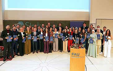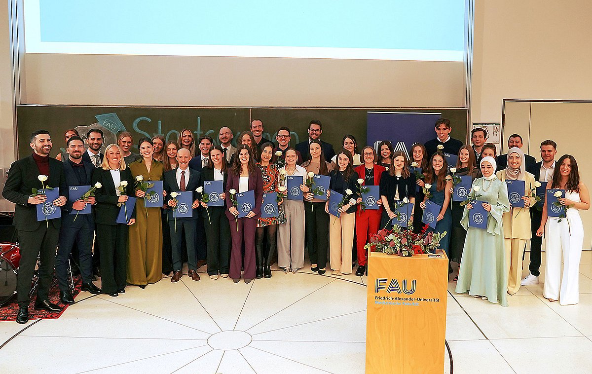 Sie haben es geschafft! Nach über fünf Jahren intensiven Lernens, praktischen Übungen und einer großen Anzahl an Prüfungen wurden in einem feierlichen akademischen Festakt am 06.12.2025 38 stolze Absolventen und Absolventinnen der Zahnmedizin offiziell geehrt. Musikalisch beschwingt umrahmt wurde der Festakt von der Jazz Combo der FAU Big Band, bestehend aus Lorenz Spies, Jana und Lea Daferner, Veronika Graßl und Jan Kopatsch.
