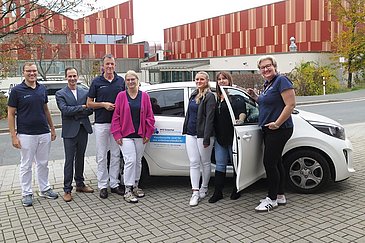 Der allgemeinmedizinischen Praxis des MVZ Eckental des Uniklinikums Erlangen liegt die langfristige, wohnortnahe hausärztliche Betreuung der Menschen in und um Eckental sehr am Herzen. Deshalb übergab der Geschäftsführer des MVZ, Florian Priebe, kürzlich ein Praxismobil an den Allgemeinmediziner und ärztlichen Leiter Prof. Dr. Thomas Kühlein und sein Team. Das neue Fahrzeug ist speziell für Hausbesuche vorgesehen: Das Praxisteam nutzt es ab sofort täglich für ambulante Visiten, die auch über den sogenannten dringlichen Hausbesuch hinausgehen. Das neue „Angebot auf Rädern“ richtet sich dabei besonders an ältere und mobilitätseingeschränkte Patientinnen und Patienten, die so eine persönliche und zeitnahe medizinische Versorgung erhalten.