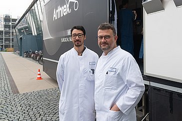 Das praktische Training ist außerdem fester Bestandteil der Weiterbildung zum Facharzt für Orthopädie und Unfallchirurgie und dient gleichzeitig der Nachwuchsförderung: „Gerade die jungen Ärzte sollen so die anspruchsvollen Techniken erlernen und ihre Fähigkeiten auch außerhalb des OP-Saals weiterentwickeln“, erklärte Prof. Perl. „Der besondere Vorteil des mobilen Trucks ist, dass heute fast das komplette Team direkt vor Ort teilnehmen kann und die Patientenversorgung trotzdem gewährleistet ist.“