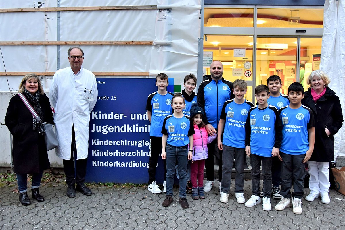 Über den Freundeskreis der Klinik für Kinder und Jugendliche Erlangen e. V. spendeten die Mitglieder der D2-Junioren des 1. FC Herzogenaurach nun 600 Euro für die jungen Patientinnen und Patienten der Kinder- und Jugendklinik (Direktor: Prof. Dr. Joachim Wölfle) des Uniklinikums Erlangen. Nach einem Spendenaufruf innerhalb der Mannschaft kamen insgesamt 500 Euro zusammen, die der Fußballverein um weitere 100 Euro aufstockte. Zudem trennten sich die Nachwuchsfußballer von einigen ihrer Spielsachen, die sie bei der offiziellen Spendenübergabe gemeinsam mit ihrem Trainer Altan Kiazim an Klinikdirektor Prof. Dr. Joachim Wölfle und die leitende Erzieherin Marion Müller überreichten.