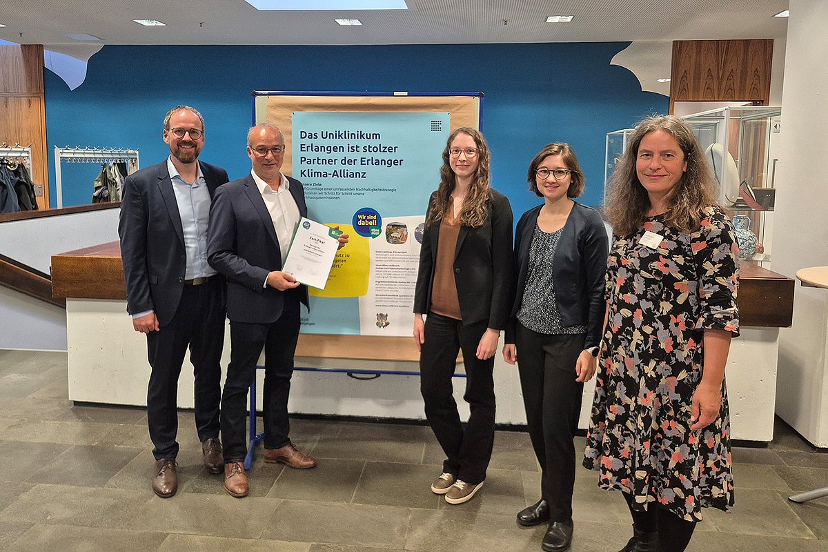 Das Uniklinikum Erlangen ist nun offiziell Partner der Erlanger Klima-Allianz und bekräftigt mit diesem Schritt sein Engagement für Klimaschutz, nachhaltiges Wirtschaften und gesellschaftliche Verantwortung in der Region. Das Ziel: auf der Grundlage einer umfassenden Nachhaltigkeitsstrategie langfristig Treibhausgasemissionen reduzieren. Die Erlanger Klima-Allianz ist ein Netzwerk lokaler Unternehmen, Organisationen und Wissenschaftseinrichtungen, das sich durch gemeinsames Handeln für eine klimaneutrale Zukunft einsetzt. Als Partner verpflichtet sich das Uniklinikum Erlangen, an den im Maßnahmenkatalog „Fahrplan Klima-Aufbruch“ formulierten Zielen mitzuwirken.