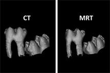 Oberflächendarstellung der Zahnwurzeln - keine signifikanten Unterschiede gegenüber herkömmlichen Verfahren feststellen. Mit Standardparametern aufgenommene MRT-Daten scheinen den heute verwendeten Röntgen- bzw. DVT-oder CT-Aufnahmen in vielen Bereichen ebenbürtig," fasst Kieferorthopäde Dr. Andreas Detterbeck vom Universitätsklinikum Erlangen zusammen und ergänzt: "Im Bereich der Knochendarstellung, in dem die Röntgenstrahl-basierten Methoden zurzeit noch besser abschneiden als die MRT, bieten neue schnelle MRTVerfahren die Chance auch diese Lücke zukünftig zu schließen."