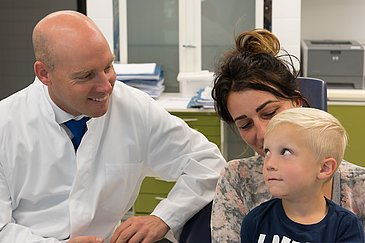 In Forschung und Patientenversorgung möchte sich Prof. Kesting in fachübergreifender Kooperation mit Kollegen des Lippen-Kiefer-Gaumenspalten-Zentrums des Uni-Klinikums Erlangen insbesondere um betroffene Babys und Kinder kümmern. Lippen-Kiefer-Gaumenspalten (LKG) gehören mit einer Häufigkeit von 1:500 Geburten zu den häufigsten angeborenen Fehlbildungen. "Es gibt heute hervorragende Behandlungsmethoden zur Korrektur dieser Fehlbildung, mit denen Ernährung, Sprache und Gehör so normalisiert werden können, dass eine ungestörte Entwicklung in alltäglicher Umgebung erreicht werden kann", sagt Prof. Kesting. Besonders stolz ist er auf eine von ihm mitentwickelte Operationstechnik zum Gaumenverschluss und auf ein innovatives Konzept zur Nasenkorrektur bei Babys. "Wenn diese Patienten das Kleinkindalter verlassen, sieht ihnen kaum jemand an, dass sie wegen einer LKG behandelt wurden." Prof. Kesting möchte die Eltern nach einer vorgeburtlichen LKG-Diagnose zuversichtlich stimmen, dass in enger Kooperation mit Frauen- und Kinderärzten der Region eine umfassende Behandlung zum Wohle ihres Neugeborenen geboten wird. "Je früher der Kontakt zwischen dem LKG-Zentrum des Uni-Klinikums Erlangen und den betroffenen Eltern zustande kommt, desto besser kann die Therapie geplant und umgesetzt werden."