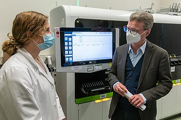 „Forschung ist ein zentraler Baustein im Kampf gegen die Corona-Pandemie, denn neue wissenschaftliche Erkenntnisse bringen neue Möglichkeiten, den Menschen zu helfen und der Pandemie zu begegnen. Unsere Hochschulmedizin ist mit ihren innovativen Forschungsprojekten und neuen präventiven und therapeutischen Ansätzen Rückgrat und Speerspitze gegen das Virus. Sie liefert lebensrettende Erkenntnisse. Das hat sich heute in Erlangen erneut in beeindruckender Weise gezeigt“, betonte der Bayerische Wissenschaftsminister Bernd Sibler bei seinem Besuch. An die sich freiwillig engagierenden Studentinnen und Studenten am Uni-Klinikum Erlangen gerichtet betonte er: „Ihr Engagement ist in dieser sehr angespannten Lage eine große Unterstützung für die Mitarbeiterinnen und Mitarbeiter des Klinikums und ein wertvoller Beitrag zur Bewältigung der Pandemie. Ihnen und der gesamten Belegschaft meinen herzlichen Dank für Ihre so wertvolle Arbeit!“