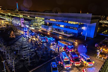 Die Rettungsdienste der Stadt Erlangen haben sich einen Tag vor Heiligabend nicht mit Martinshorn, sondern mit ungewöhnlichen Klängen auf den Weg zum Universitätsklinikum Erlangen aufgemacht. Aus einem Lautsprecher spielten sie vor vier Klinikgebäuden Weihnachtslieder, um den großen und kleinen Patienten eine Weihnachtsfreude zu bereiten, nachdem in den Kliniken auch über die Feiertage leider ein Besuchsverbot besteht.