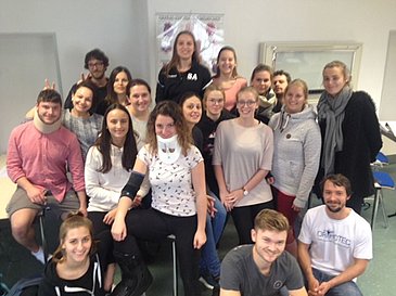 Am Montag, den 03.12.2018 fand im medizinischen Fach Chirurgie eine besondere Art der „Anprobe“ statt. Der Orthopädietechniker Herr Koschmieder von der Firma ORTHOTEC aus Erlangen stand mit drei großen Kisten, gefüllt mit den unterschiedlichsten Orthesen, im Unterrichtsraum des Mittelkurses 2017/21. Die ersten Berührungsängste waren schnell verflogen und die Schülerinnen und Schüler probierten vom Walker über die Donjoy®-Schiene bis hin zur Halskrawatte alle Hilfsmittel aus. Die 90 Minuten vergingen wie im Flug. Die Klasse der Physiotherapeuten bedankt sich bei Herrn Koschmieder für seinen grandiosen Einsatz und für den stattgefundenen interdisziplinären Austausch!