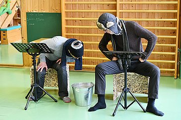 Witzig und rührend erzählten "Ox und Esel" die Weihnachtsgeschichte um Maria, Josef und das Jesuskind einmal ganz anders. Mucksmäuschenstill lauschten die Zuhörer dem iahenden Esel und dem bisweilen mürrischen Ochsen. Die liebenswerten Tiere einigten sich darauf, den kleinen "Störenfried" in ihrer Krippe so lange zu versorgen, bis dessen Eltern Josef und Mechthild - oder doch Maria? - vom Einkaufen zurückkommen. Und so galt es, das Kind zu füttern, es in den Schlaf zu singen und es gegen die Soldaten des Herrn Rodes zu verteidigen. Und dann waren da auch noch diese drei Könige, die einem ominösen Stern hinterherliefen...