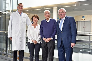 Einen großen Teil zu dieser trägt jetzt Peter Griebel bei. Dem ehemaligen Ingenieur liegt die medizinische Forschung am Herzen. "Zum einen möchte ich auch andere motivieren, im Rahmen ihrer Möglichkeiten für den medizinischen Fortschritt zu spenden. Zum anderen ist es wichtig, jungen Menschen zu zeigen, dass eine Forschungskarriere Zukunft hat", sagte Peter Griebel bei der Spendenübergabe und erläuterte: "Ich freue mich, Prof. Mackensen, seine Mitarbeiter und ihre Arbeit zu unterstützen, damit die Heilungschancen für zukünftige Generationen besser stehen." Prof. Dr. Werner G. Daniel, Vorstandsvorsitzender der Forschungsstiftung Medizin, begrüßte die großzügige Spende und betonte: "Der hohe Standard medizinischer Forschung kann nur beibehalten werden, wenn die staatlichen Mittel durch Privatspenden ergänzt werden. Umso mehr freuen wir uns, Peter Griebels Spende mit 10.000 Euro aufzustocken."
