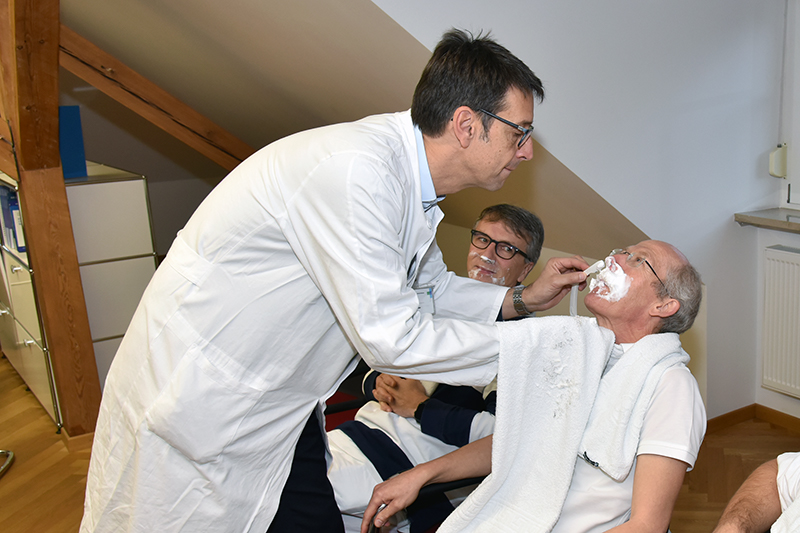 "Shave-off" am Ende der "Movember-Aktion" 2018: Ein Radiologe rasiert seinen Kollegen den Bart ab, einem nach den anderen! Was für Außenstehende sehr ungewöhnlich erschien, ist im Radiologischen Institut (Direktor: Prof. Dr. Michael Uder) und der Urologischen und Kinderurologischen Klinik (Direktor: Prof. Dr. Bernd Wullich) des Uni-Klinikums das traditionelle Ende einer Aufmerksamkeitskampagne gegen Krebs bei Männern.