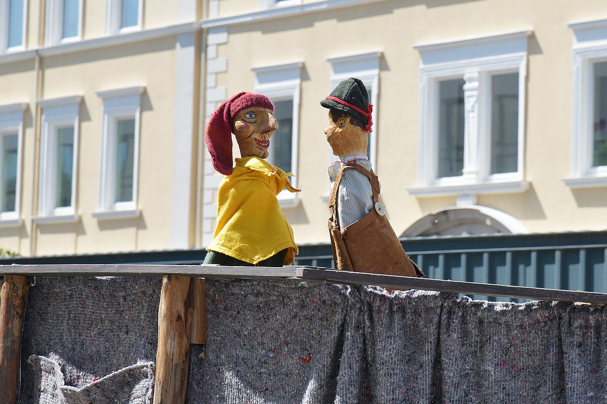 Die Kinder und Jugendlichen, ihre Eltern sowie einige Beschäftigte der Kinderklinik verfolgten das Stück auf Stühlen und Bänken im Hof bzw. von den Balkonen der Klinik aus. Das Theater Kuckucksheim aus Heppstädt präsentierte „Räuber Hotzenplotz“ mit Darstellern, Handpuppen und Musik und sorgte für viele Lacher bei den kleinen und großen Zuschauerinnen und Zuschauern. Diese verfolgten gespannt, wie der Räuber Großmutters Kaffeemühle stahl und wie Seppel und Kasperl sich aufmachten, ihn zu fangen.