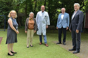 Klinikdirektor Prof. Wölfle bedankte sich dafür, dass die neu gegründete Stiftung von nun an das Angebot für sterbenskranke Patientinnen und Patienten unterstützt: „Wir brauchen Menschen wie Sie, die der Kinder- und Jugendmedizin Rückenwind geben, und sind sehr dankbar für Ihr Engagement!“ Das Geld aus „Raum für Kinder“ soll u. a. in die Musiktherapie für schwer kranke Kinder und Jugendliche fließen, erläuterte Dr. Gravou-Apostolatou: „Der Vorteil dieser Therapie ist, dass auch Patientinnen und Patienten mit geistiger Behinderung davon profitieren. In der Palliativversorgung sind wir auf Spenden angewiesen: Einen Teil unseres Teams finanzieren wir vollständig durch Drittmittel.“ Doch nicht nur künstlerische Projekte oder die Musiktherapie sollen mit den gestifteten Beträgen gefördert werden. Die Kinderklinik plant auch neue Räumlichkeiten, insbesondere für chronisch kranke und palliative Patientinnen und Patienten, zu schaffen. „Wir wollen beispielsweise einen Kreativ- und einen Elternraum einrichten und eine Küche, in der spezielle Mahlzeiten beispielsweise für Kinder mit Stoffwechselstörungen zubereitet werden können“, so Dr. Gravou-Apostolatou. „Dank der großzügigen Zuwendung durch ‚Raum für Kinder‘ könnte dieses Vorhaben Wirklichkeit werden. Mein herzliches Dankeschön an Erika Raum!“