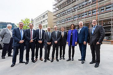 Eineinhalb Jahre, nachdem der Grundstein in ca. zwölf Metern Tiefe unterhalb der Erdoberfläche gelegt wurde, ist nunmehr bis auf eine Höhe von ca. 27 Metern über dem Gelände die Stahlkonstruktion für die Hubschrauberplattform errichtet worden. Aus diesem Anlass lud die Bayerische Staatsministerin für Wohnen, Bau und Verkehr, Ilse Aigner, am heutigen Montag zum Richtfest an den Maximiliansplatz 1.