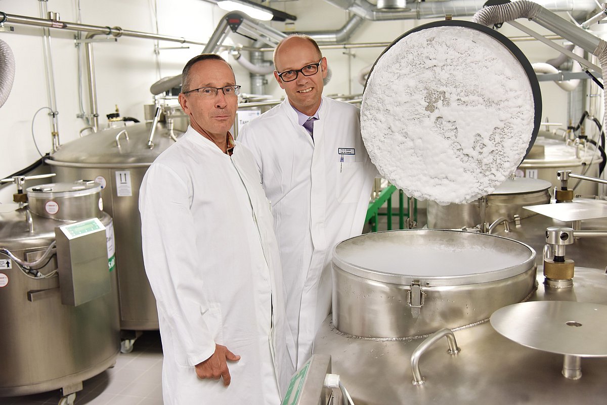 In der Erlanger Stammzellbank auf dem Kussmaul-Forschungscampus in der Hartmannstraße werden blutbildende Stammzellen aus dem strömenden Blut, aus Knochenmark und Nabelschnurblut gewonnen und in Tanks mit flüssigem Stickstoff bei ca. −160 °C tiefgefroren. Diese Stammzellpräparate stehen weltweit Patienten mit lebensbedrohlichen Störungen der Blutbildung als Arzneimittel zur Verfügung – etwa Menschen mit Leukämie, einem Lymphom oder einem Immundefekt. Transfusionsmediziner sprechen hier von der allogenen Stammzelltransplantation – also von der Zellübertragung von einem Spender auf einen Empfänger. Zudem können am Uni-Klinikum Erlangen Eltern das Nabelschnurblut ihres eigenen Kindes gegen Entgelt einlagern lassen, um ihm bei einer möglichen späteren Erkrankung die darin enthaltenen Stammzellen transplantieren zu lassen. Dieses Verfahren wird als autolog bezeichnet – der Patient bekommt also seine eigenen Stammzellen zurück. „Wir haben das NetCord-FACT-Zertifikat sowohl für allogene als auch für autologe Stammzellspenden erhalten“, erklärt Prof. Weisbach.