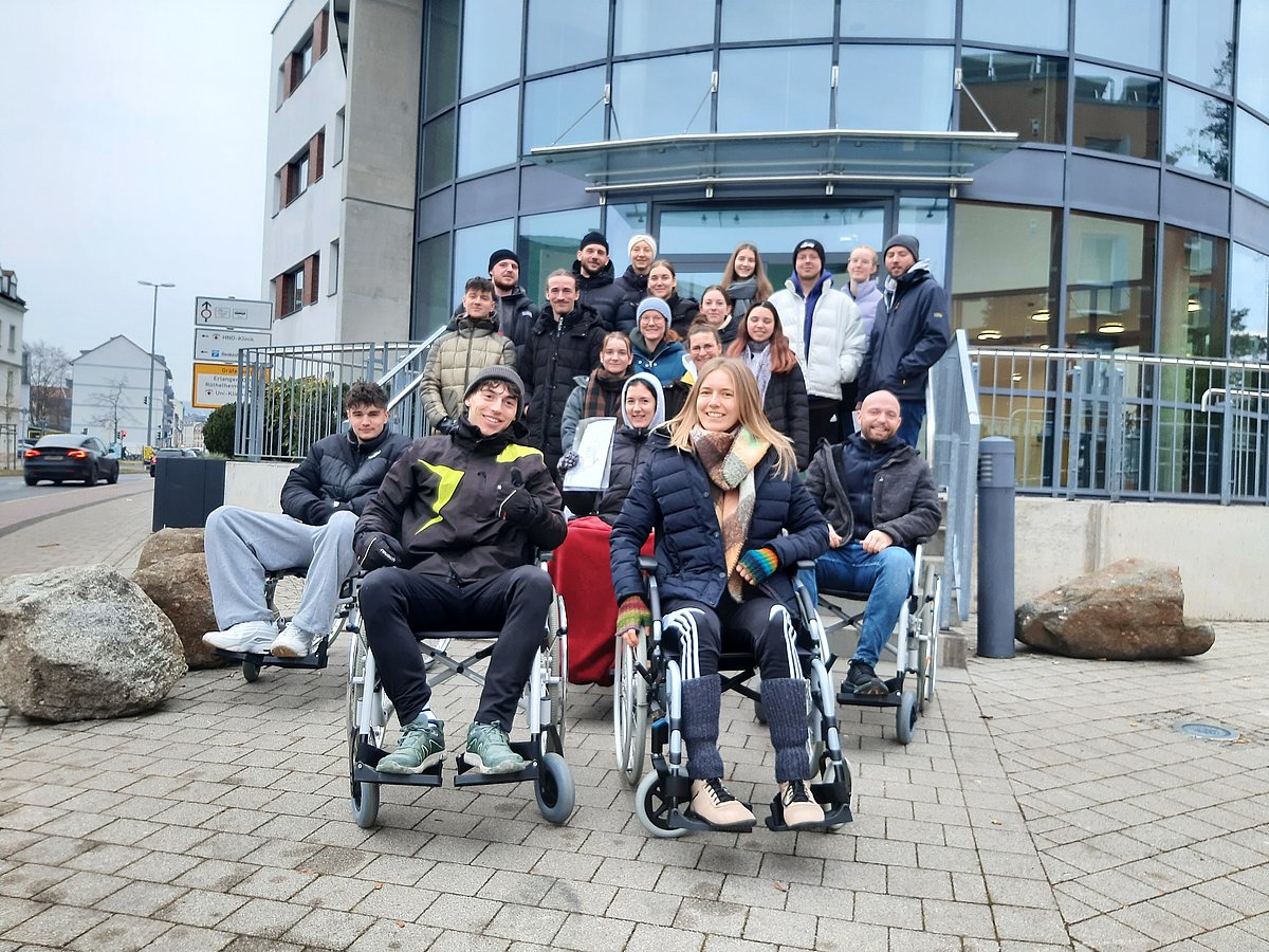 Das alljährliche Rollstuhlprojekt ermöglichte dem Mittelkurs der Staatlichen Berufsfachschule für Physiotherapie neue Eindrücke zum Thema Gehunfähigkeit. Die an diesem Tag gemachten Erfahrungen führten zu einem besseren Verständnis für Menschen, die sich selbst nicht mehr ohne Hilfsmittel fortbewegen können. Eine besondere Herausforderung stellte der selbständige Bäckerbesuch im Rollstuhl dar, der damit verbundene Transport eines Heißgetränkes und das Aufsuchen einer behindertengerechten Toilette. Alle Handlungsabläufe (Einkauf, Ampelüberquerung, Bordsteine, Kopfsteinpflaster usw.) mussten neu überdacht und bewältigt werden. Die Schüler waren sehr erstaunt, wie viele Hürden sich Menschen mit Gehunfähigkeit im Alltag stellen.