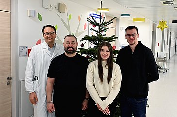 Ein Essenslieferdienst der besonderen Art klopfte kürzlich in der Kinder- und Jugendklinik (Direktor: Prof. Dr. Joachim Wölfle) des Uniklinikums Erlangen an die Türen: Die Burgerheart Fürth GmbH überraschte die jungen Patientinnen und Patienten der Kinderonkologie sowie deren Eltern und die Mitarbeitenden mit Burgern, Pommes, Salaten und unterschiedlichen Dips. Beim Verteilen der schmackhaften Spende verbreiteten Geschäftsführer Thorsten Sambs und seine Mitarbeitenden Sophia Menzel und Dennis Hartmann gute Laune in der Onkologischen Ambulanz, in der José-Carreras-Tagesklinik und auf der Station 2C.